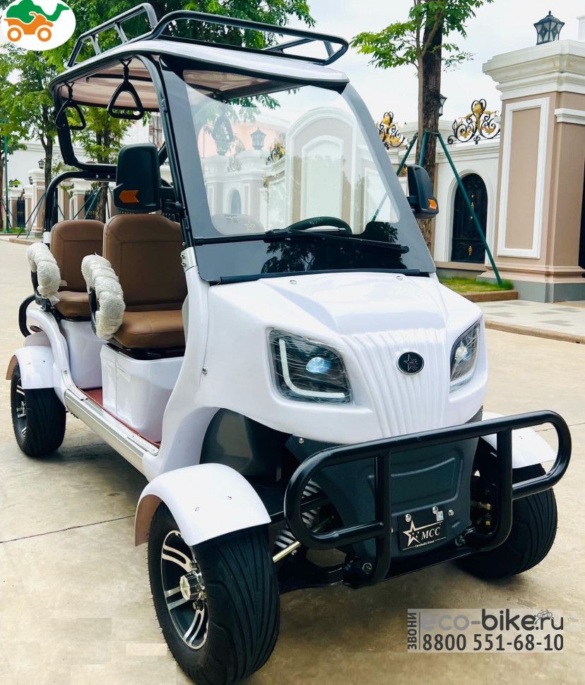 Четырехместный гольфкар представляет собой электрическое транспортное средство, спроектированное для перевозки четырех пассажиров, часто используется на гольф-полях, в коммерческих и индустриальных сферах, таких как курорты, заводы, склады, аэропорты, парки и другие места, где требуется эффективный и экологичный способ перевозки пассажиров. Электрические гольфкары считаются более экологичными, так как не выбрасывают вредных газов и имеют низкий уровень шума, что особенно важно в рабочих местах, где шум может быть проблемой.